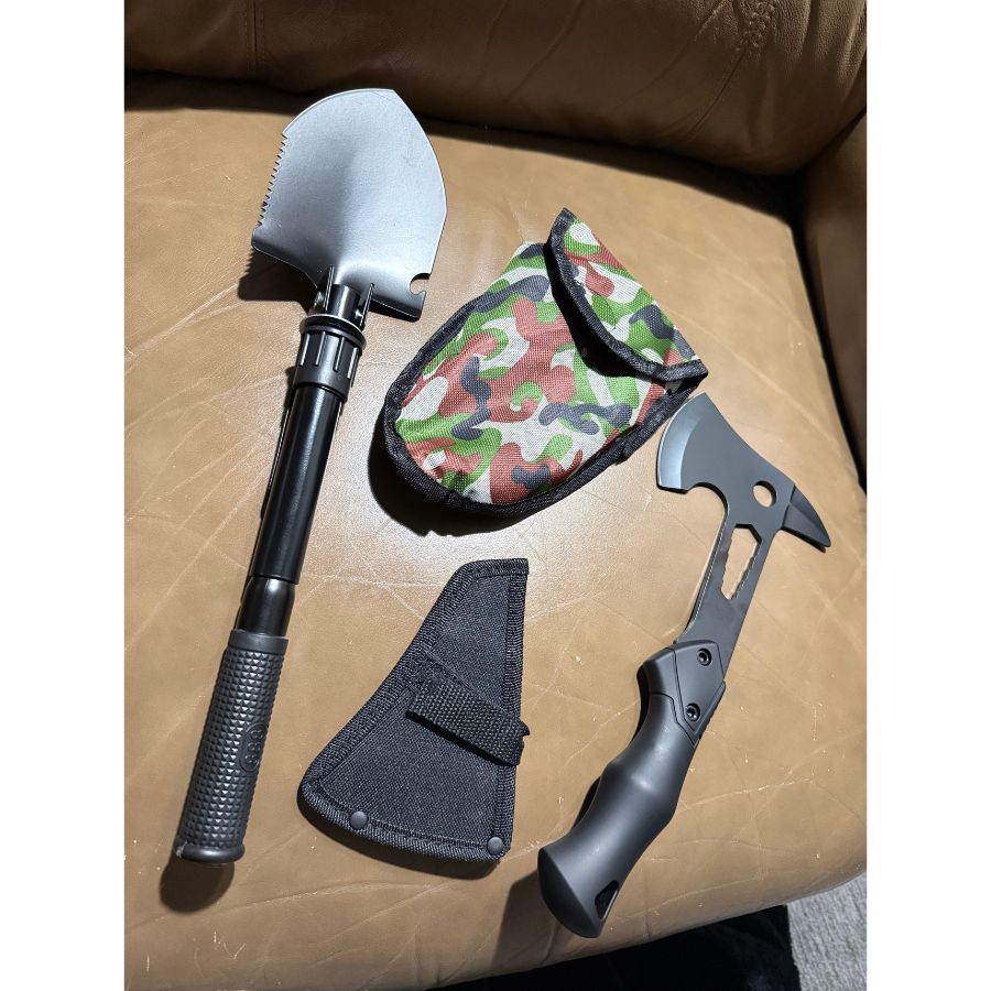 Ax, shovel, blades, utensils, wrenches, screwdrivers, pliers, fishing gear, saws